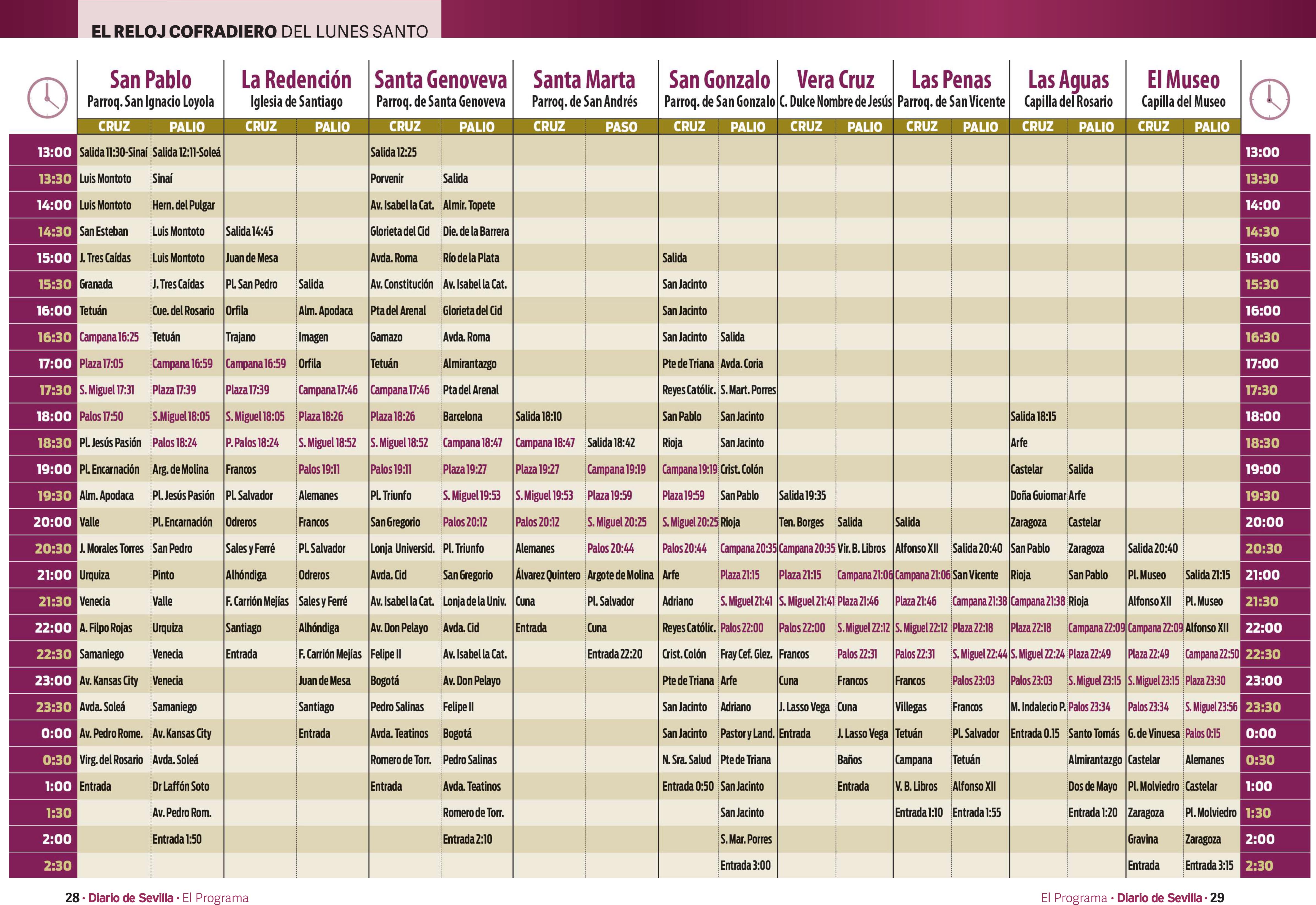 19:30 Pl. Jesús de la Pasión Alemanes P. San Miguel (19:53) Plaza (19:59) San Pablo Castelar 19:30